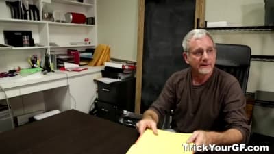 La femme a un petit ami beaucoup plus âgé qu'elle, mais il est très accommodant et veut la rendre heureuse, alors elle prend ce coquin pour la baiser.