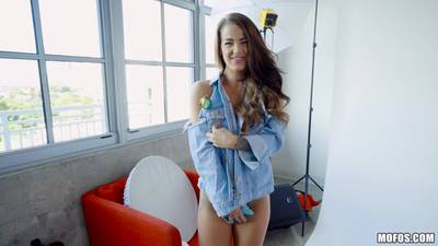 Ce jeune modèle aime sucer une grosse bite après une séance photo. Voyez comme elle aime avoir la queue dans sa bouche !