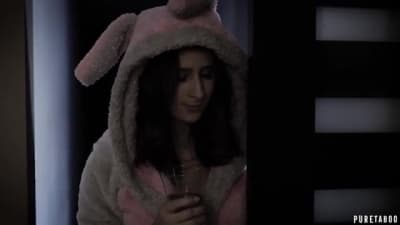 Pyjama party qui part en couilles violente pour cette jeune brunette le tout a coté de sa mom qui dort