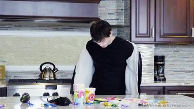 Mature blonde aux tres beaux seins se tape un jeunot dans la cuisine, c'est une suceuse de bite experte