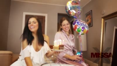 Adriana et Kissa offre à Johnny un fleshlight, elle le branle et lui monte dessus en cowgirl normal et inversée pour baiser et se faire creampie