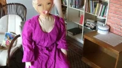 Ce mec gay porte des vêtements féminins et il va se faire plaisir en tentant de troncher une poupée gonflable !