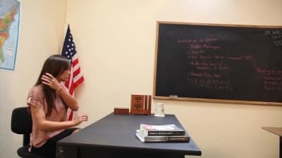 Cette jolie brune très sexy voit sa prof après les cours et ça tourne au lait charge des chattes et de cul