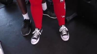 Une black avec coach dans une salle de sport