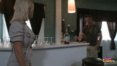 La magnifique bimbo blonde va baiser un pote, elle va bien se faire tamponner la chatte avant de recevoir du sperme sur ses gros seins.