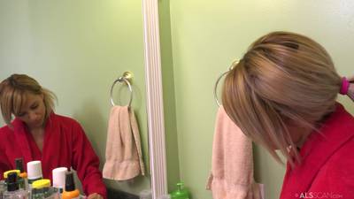 La jolie petite teen Hime Marie finit de se brosser les dents. La brosse lui rappelle un vibros et ça lui donne envie de se masturber