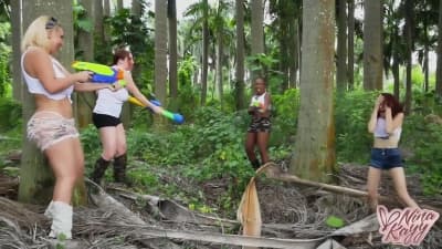 Ont peut dire qu'elles savent toutes bien s'amuser sait charmantes femmes.Une belle partouze en plein air