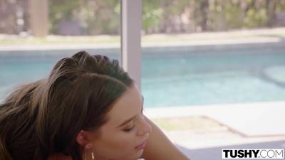 Mec remplit un trou du cul serré avec sa grosse bite et puis jouit plus tard sur les lèvres souriantes de la fille