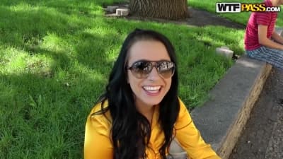 La belle brune va se laisser tenter par une bonne baise dans un parc, elle va même prendre la bite dans son cul.