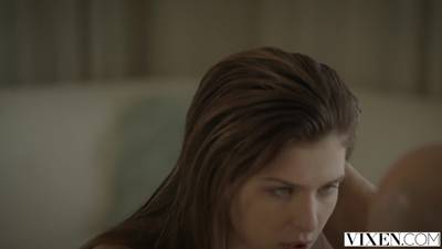 Cette jeune salope se croyait seule et se baigne nue dans la piscine. En sortant de l eau elle est rejoint par un mâle qui va la baiser et l enculer