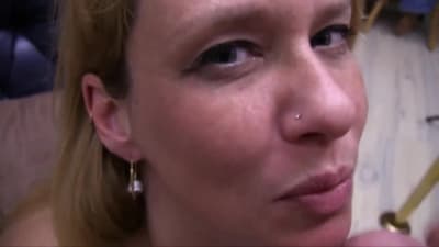 Cette belle milf allemande est une salope qui se caresse, suce une bite et se fait baiser en pov y compris dans le cul