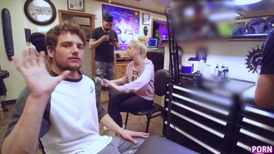 Deux blondes décident de s'amuser avec leur tatoueur qui est plutôt beau garçon et bien foutue il va s'en donné à coeur joie.