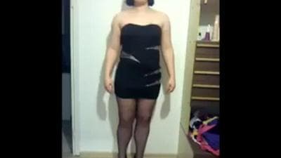 Cette vidéo amateur est plutôt coquine. La grosse habillée avec sa tenue sexy se pelote les seins et se branle, afin d'éjaculer sur ses souliers.