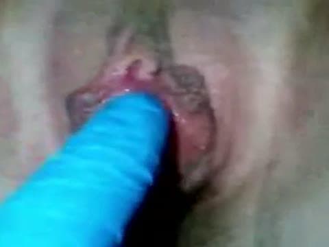 Après sa douche et d'avoir sa chatte bien rasée, cette grosse femme à lunettes se fait tripoter la chatte, pendant qu'elle se caresse les gros seins.