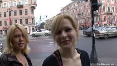 Le mec essaye cherche dans la rue une meuf prête à baiser. Une jeune brune accepte et se laisse même faire sodomiser