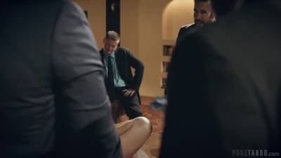 Entourée de mec en costume assez chic, elle se prendre une bite bien salé dans la chatte en levrette et c'est pas pour la déplaire