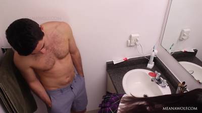 Apres l'avoir surpris a se branler avec son string elle s'offre a son demi frere on le laissant la baiser dans la salle de bain.