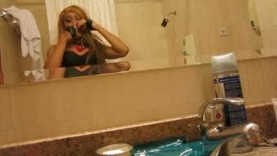 Qu'on se le dise les amis, cette femme a bite va se faire plaisir en prenant un dildo énorme dans le fion... Le tout dans le salle de bain