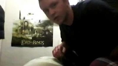Le type est seul dans la chambre de l'université. Alors il décide de se déshabiller et de se branler jusqu'à éjaculer sur le sol.