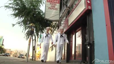 Ces deux marins sont arrivé en ville et veulent s'amuser. Ils se font sucer par le vendeur du magasin et ça se transforme en trio de baise.