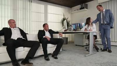 Pornstar Gabriella Lati dans le rôle d'une de la nouvelle secrétaire chaude avec 4 collègues mâles qui en profitent pour la démonté au boulot