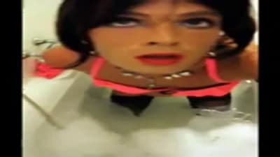 Cette jeune transsexuelle se prépare pour un bain relaxant. Juste avec ses collants et son soutien gorge, elle se branle pour vous.