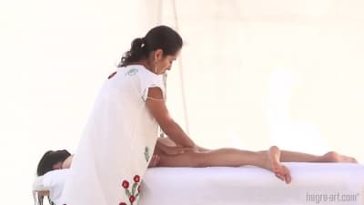 Cette masseuse va offrir un sublime massage à sa cliente qui va se détendre totalement