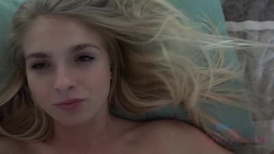 Cette jolie blonde débarque à l'imprévu chez un mec pour se présenter, et les deux vont baiser sur le lit après quelques mots seulement.