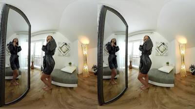 Notre belle brune offre un mini show en solo toute nue dans sa chambre, elle va se mettre les doigts et titiller son clitoris