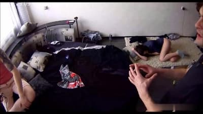 Trois meufs sont mises en levrette, elles se font toutes les trois baiser par leurs mecs, ils ne mettent pas de préservatifs