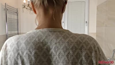 Une blonde chaude et mature prend du plaisir en douceur sur son corps et profite de chaque instant qu'elle y passe seule.