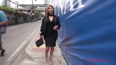 La jeune asiatique va passer un petit casting, elle va s'offrir au lascar et recevoir du jus dans sa chatte poilue.