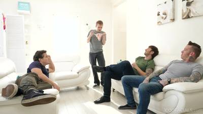 Cette belle mère va faire plaisir a tous les mecs dans le salon en arrivant en sous vêtements et en les sucant tous comme un pute a leur disposition, superbe!