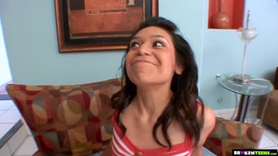 Elle se caressait la chatte avant qu'elle ne se fasse surprendre par le père de sa copine. Elle fait moins la maligne et se prend sa bite dans la chatte