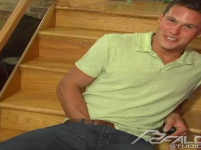 Aaron se déshabille et montre ses muscles. Aujourd'hui il va vous offrir une scène de branlette, godage et éjaculation massive contre le mur.
