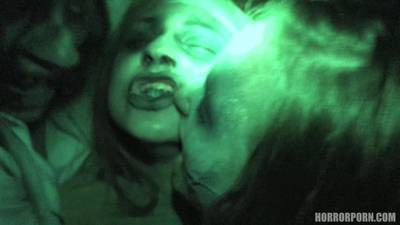 Cette scene et folle et peu commune ! ce mec tombe sur des femme zombie dans le noir mais heureusement ! elles sont la pour le sucer direct