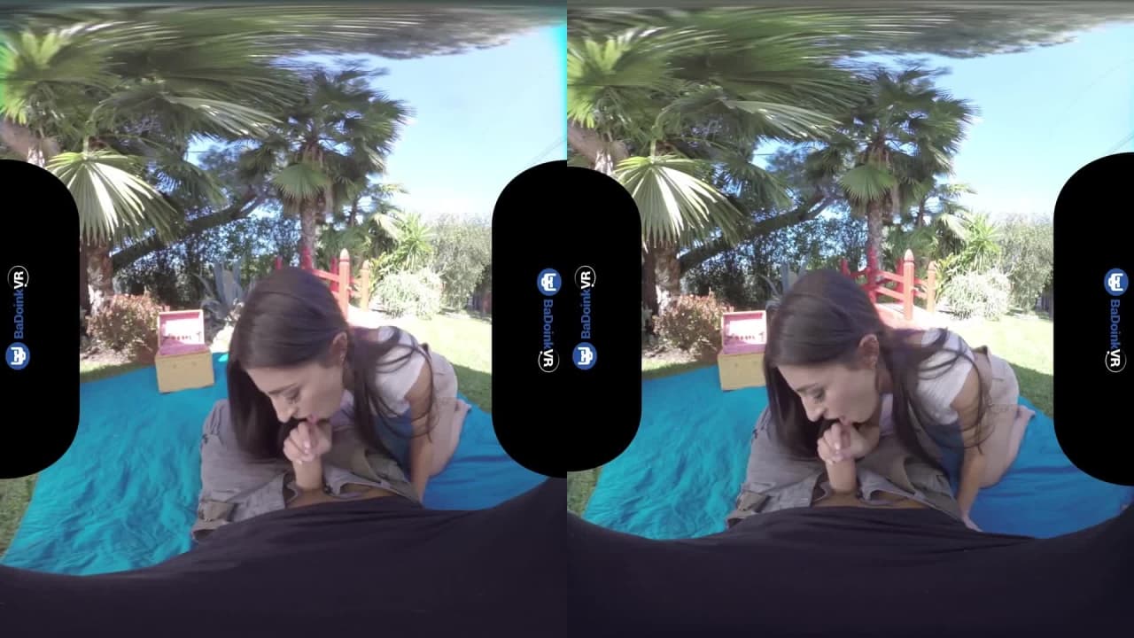 Imagine-toi, tu es allongé sur une couverture dans le parc et une fille sexy commence à te sucer la bite. Vis cette expérience dans un porno VR en plein air.
