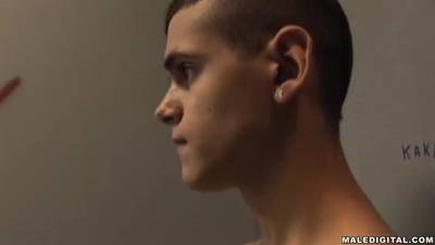 Le petit minet se fait filmer pendant qu'il se branle. Il s'assied confortablement dans les toilettes et s'amuse avec sa queue, jusqu'à jouir