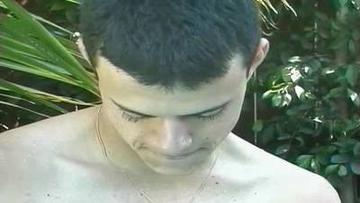 Le jeune homme arabe se fait filmer au bord de la piscine. Excité, le mec va se masturber et éjaculer