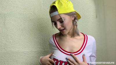 Blondinette retire son casque audio et sa casquette pour bien sucer cette belle bite
