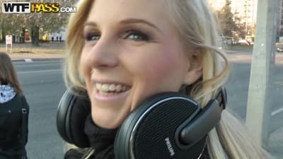 La magnifique blonde va nous accueillir pour nous faire visiter le panorama, elle va nous emmener au bord du lac et nous offrir son cul.