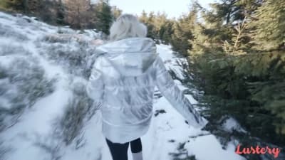 Une femme blonde va faire a cet homme une fellation dans le télésiège avant d'arriver au chalet pour faire l'amour