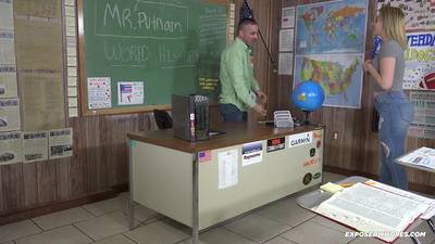 Cette étudiante va baiser avec son professeur, elle a l'habitude se baiser avec lui mais pas de se faire surprendre! Elle va savoir improviser!