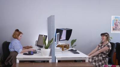 Au bureau les lesbiennes Luci et Willow se masturbent