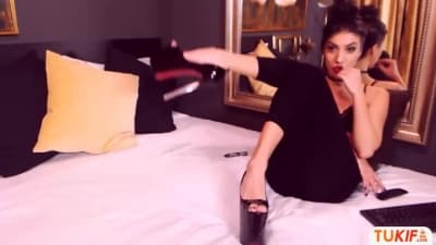 Sierra est toute sexy avec ses vêtements noirs et ses hauts talons, elle enlève tout et nous écarte bien ses cuisses pour se masturber en solo