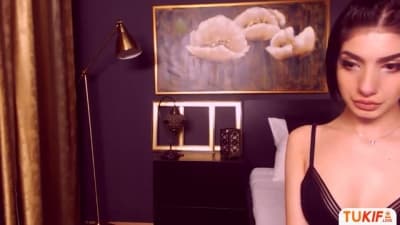 En lingerie sexy, cette salope se tortille dans tous les sens en se prenant son gode dans la chatte. Elle mouille et se donne des fessées solo