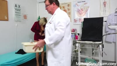 Cette jolie blonde vient chez le gynécologue pour une petite visite et se retrouve avec une gode motoriser dans la chatte