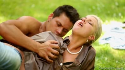 Cette blonde se laisse pénétrer par le jardinier parce qu'elle aime ses muscles et sa bite dure. Elle lui pisse dessus.