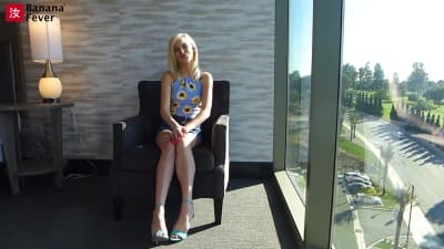 La jeune blonde est une vraie bombe, elle va se dénuder et venir sucer la bite en POV avant de grimper dessus pour gérer la baise.