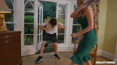 Elle essaye de le chasser en vain et fini par baiser avec le fils bien chaud qu'est jordi polla qui va aimer ce qu'il lui arrive